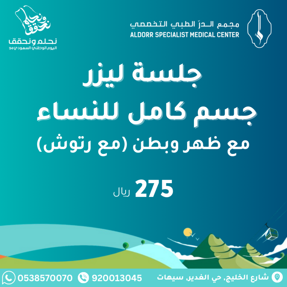 جلسة ليزر جسم كامل للنساء مع ظهر وبطن